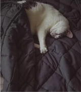 "Mano katė oficialiai pasisavino mano sunki1 antklodę! Kai tik ją išskleidžiu, ji susirango ir murkia. Tai jos nauja mėgstamiausia vieta. Mano taip pat. Geriausiam jaukiam miegam kartu!"