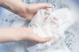 Naudokite drungną vandenį ir nedidelį kiekį švelnaus ploviklio. Švelniai perplaukite, nenaudokite gręžimo ir nedelskite su skalavimu, kad nepažeistumėte pluošto.