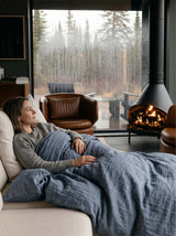 Dauguma sunkių antklodžių naudojamos su standartiniais patalynės užvalkalais. Jie prideda papildomo audinio, juda nakties metu ir keičia tai, kaip turėtų jaustis svoris. Rezultatas — mažiau stabilus ir mažiau komfortiškas pojūtis. Šis komplektas tai išsprendžia. Jis sujungia NOXNOX sunkią antklodę ir lino užvalkalą, kuris sukurtas būtent jai — ne pritaikytas, ne universalus, o pagamintas veikti kartu. Užvalkalas pritaikytas 150×200 cm dydžiui ir sukurtas pagal NOXNOX vidinę kilpų sistemą. Sustiprintos juostelės išdėstytos tiksliai taip, kad viskas išliktų savo vietoje. Linas pakankamai plonas, kad svoris jaustųsi natūraliai — jaučiate antklodę, o ne užvalkalą. Jokio slydimo, jokio trukdymo. Pagaminta iš 100% lino Lietuvoje. Iš pradžių šiek tiek standesnis, bet naudojant minkštėja, išlieka laidus orui visus metus — nekaupia šilumos, o ją išleidžia. Rezultatas — sunki antklodė, kuri jaučiasi taip, kaip turi būti: stabili, natūrali ir patogi visais metų laikais.
